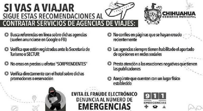 Por lo anterior, en el marco de la temporada vacacional y con el objetivo de evitar que quienes compran viajes, o paquetes vacacionales a través de Web, sean víctimas de defraudadores que se anuncian en páginas falsas, se emiten recomendaciones que serán útiles al momento de contratar este tipo de servicios en línea, toda vez que detectó 47 agencias fraudulentas.